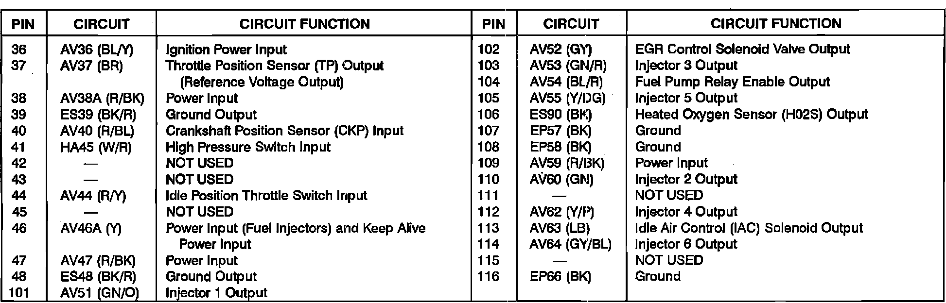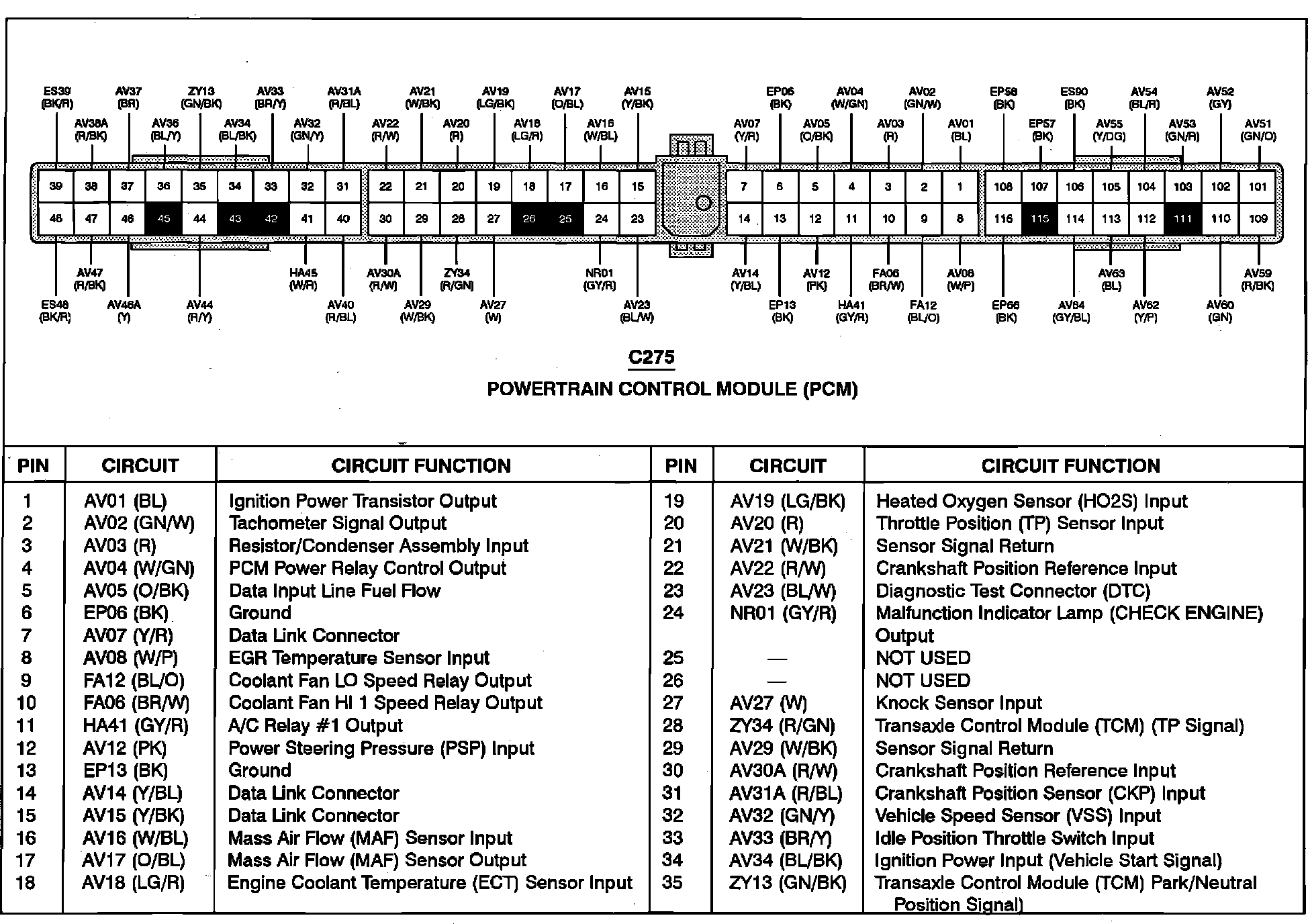 Powertrain Control Module (PCM) Pinout Chart: