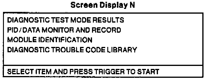 Screen Display N displays the diagnostic tests available on the automatic transaxle (TCM). Follow the same logic used in the PCM functions to view each function displayed on this screen, and to see what options are available in each function.