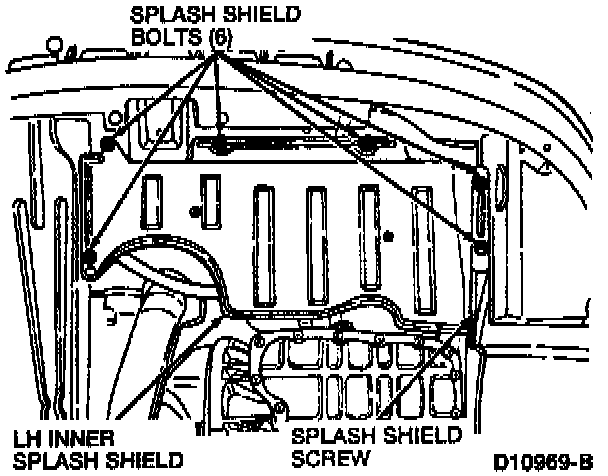 4. Remove the six splash shield bolts, splash shield screw and the LH inner splash shield.