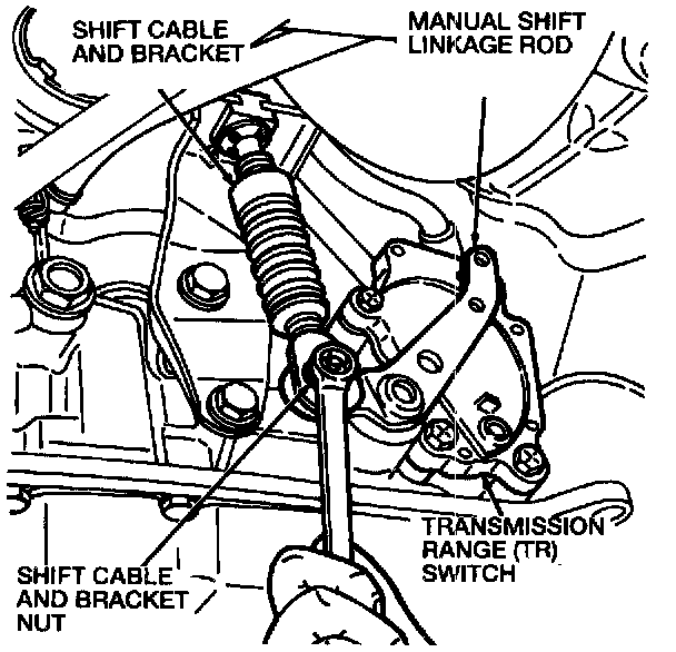 5. Remove the shift cable nut and the shift cable from the manual lever.