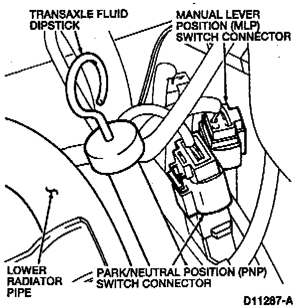 2. Disconnect the Manual Lever Position (MLP) switch and the Park/Neutral Position (PNP) switch connectors.