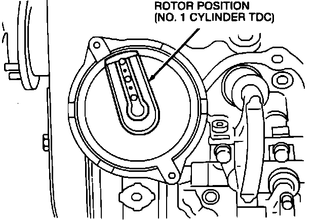 3. Install the distributor, making sure the rotor is aligned as shown when fully seated.