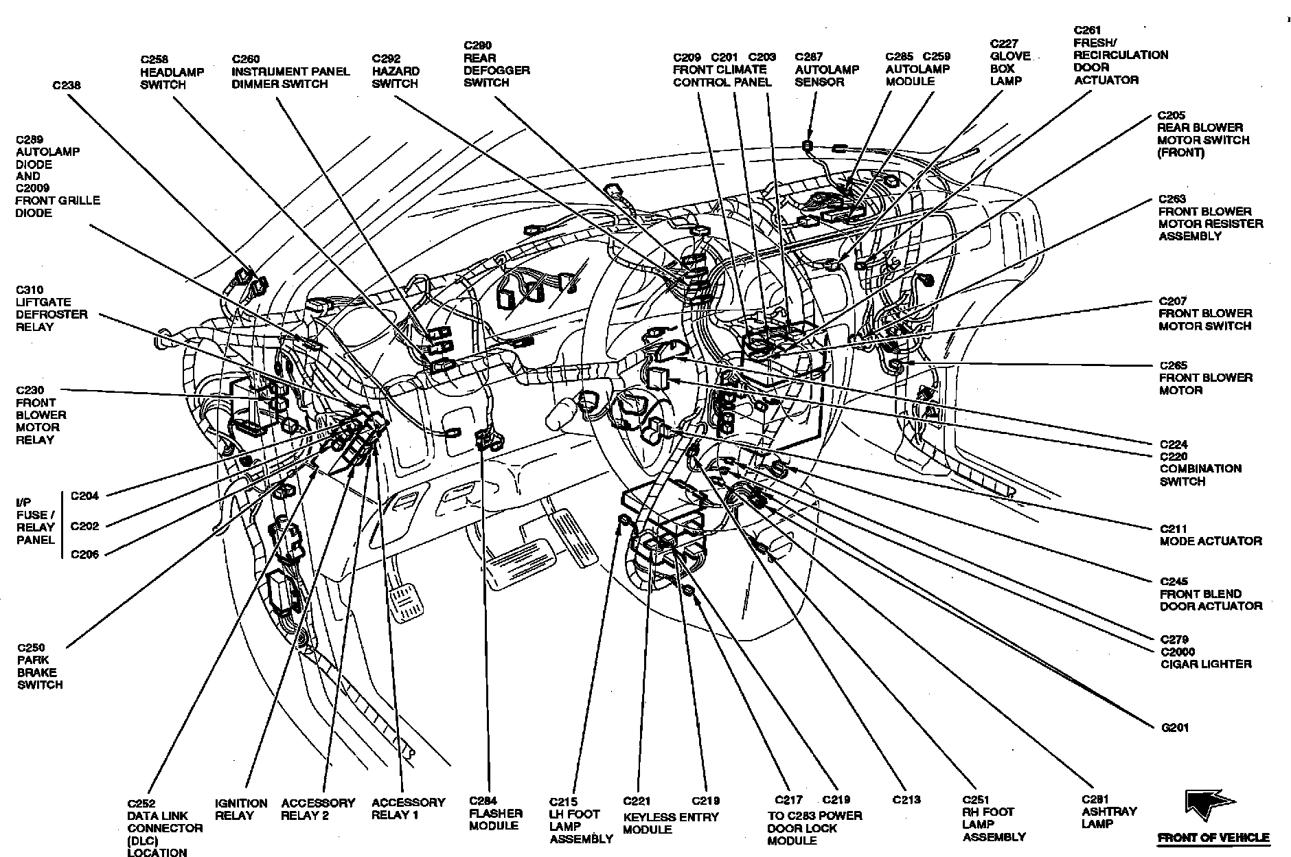 The Keyless Entry Module is located below center of I/P, mounted on center I/P support brace.