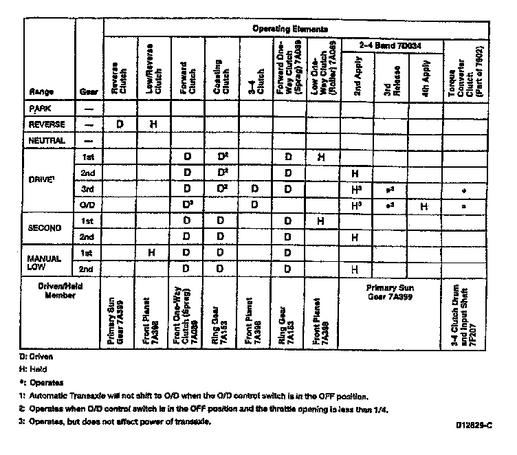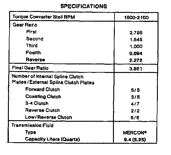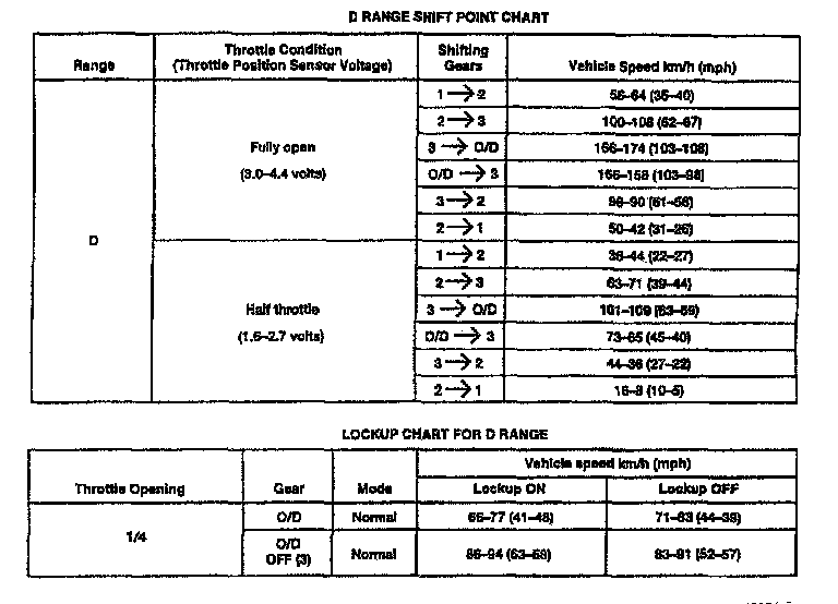 4F20E 4-spd A/T, Drive Range Shift Chart: