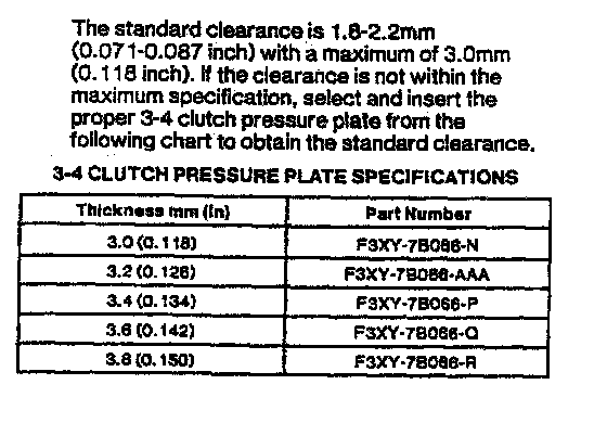 4F20E 4-spd A/T, 3-4 Clutch Clearance: