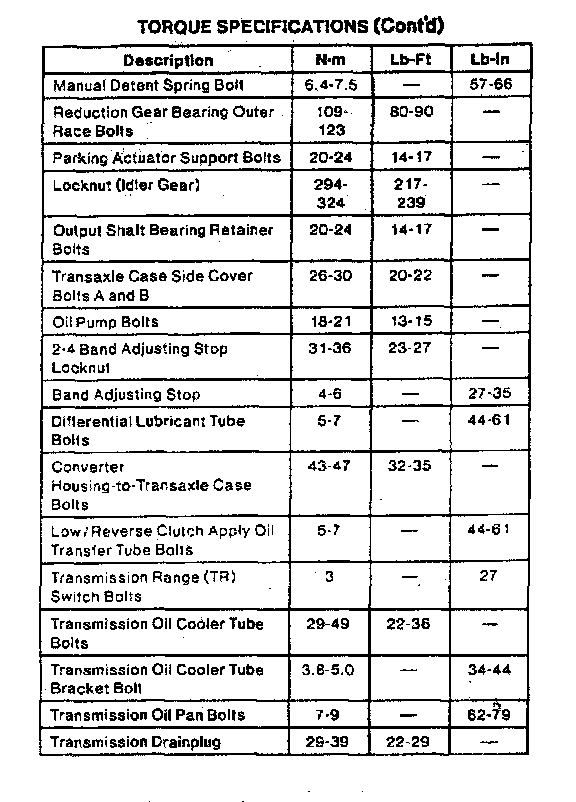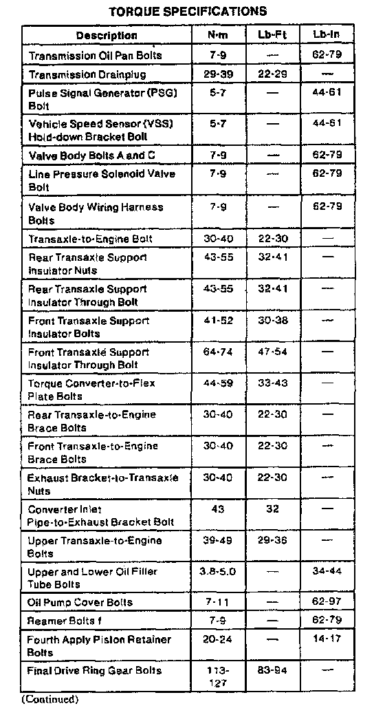 4F20E 4-spd A/T, Transaxle Torque: