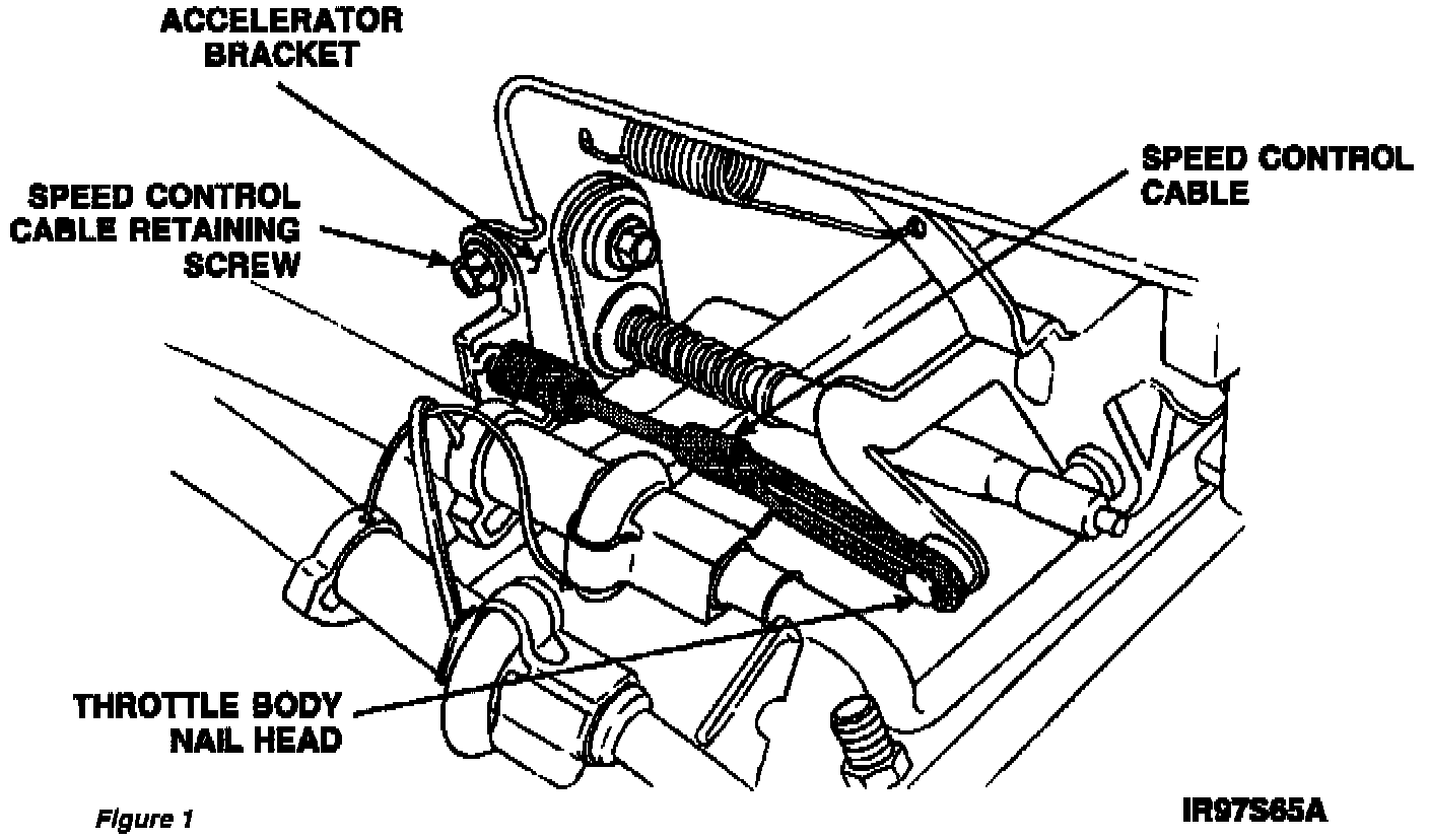 2. Detach the speed control cable from the throttle body nail head. See Figure 1.