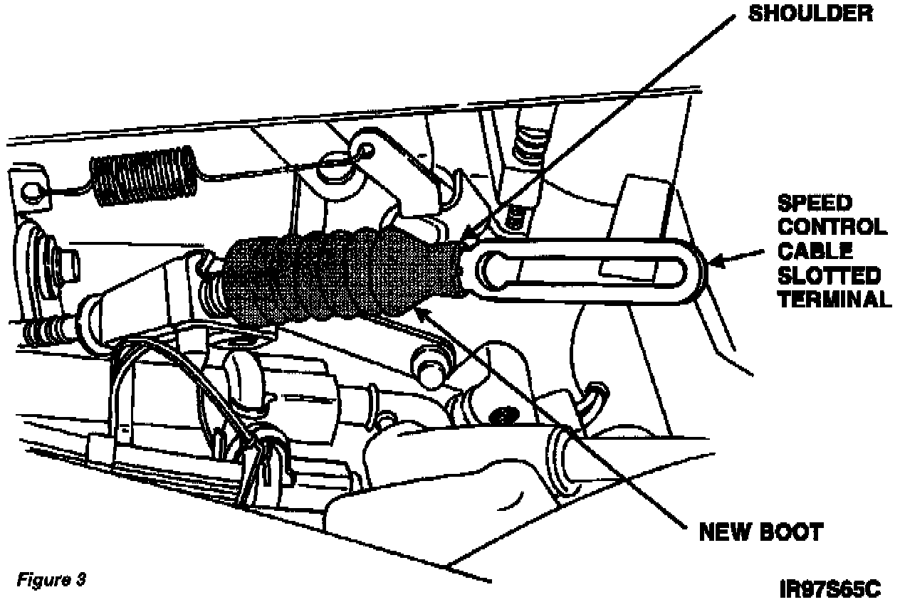 5. Slip the speed control cable boot over the end of the cable and locate it on the shoulder behind the slotted terminal. See Figure 3.