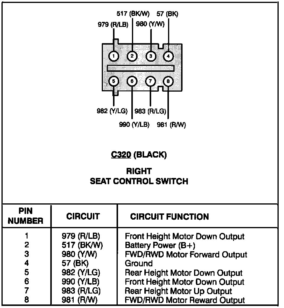 Right Seat Control Switch: