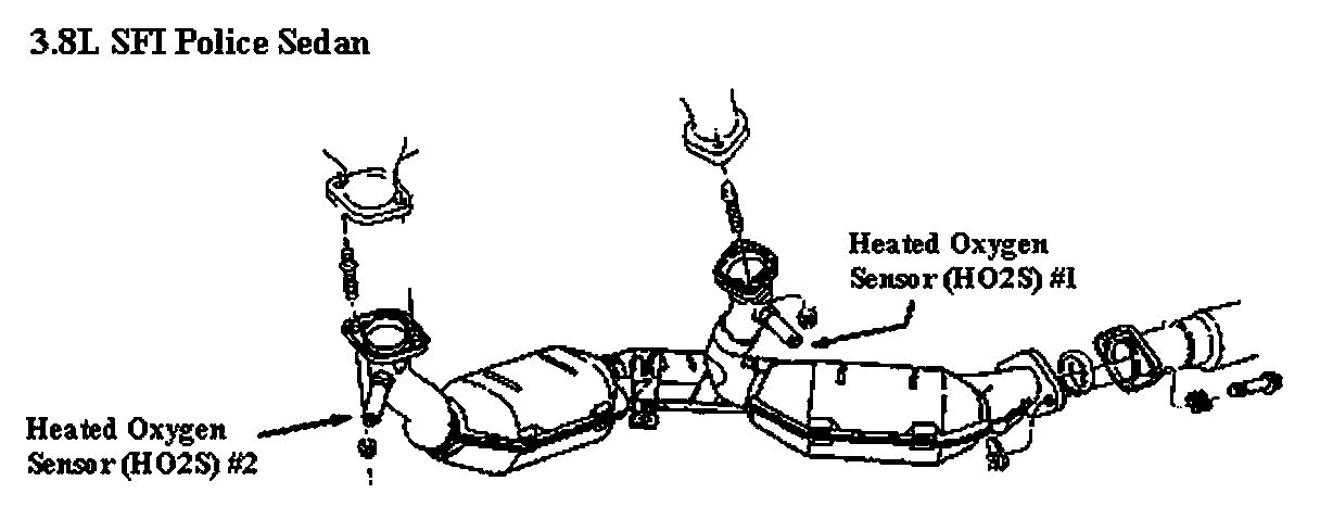 One of the Heated Oxygen Sensors (HO2S) is located in the LH exhaust manifold and the other is located in the dual converter Y pipe.