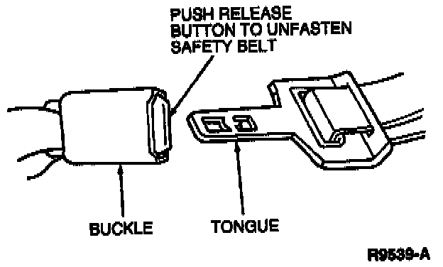 WARNING: EACH SEATING POSITION IN THE VEHICLE HAS A SPECIFIC SAFETY BELT ASSEMBLY WHICH CONSISTS OF ONE BUCKLE AND ONE TONGUE. THE SAFETY BELT ASSEMBLY IS DESIGNED TO BE USED AS A PAIR AND IS NOT TO BE USED ACROSS SEATING POSITIONS.