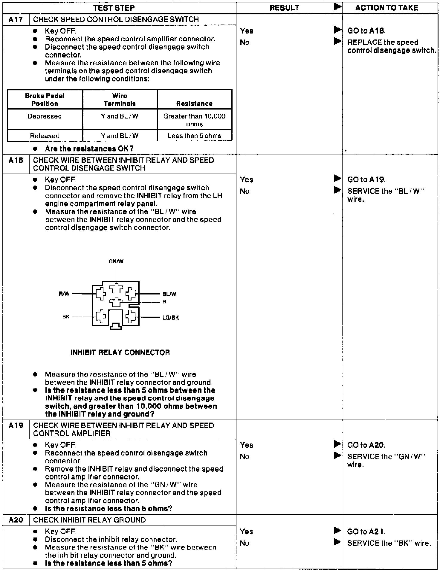 Test A: Speed Control Inoperative. Test A: Speed Control Inoperative. Test A: Speed Control Inoperative.: