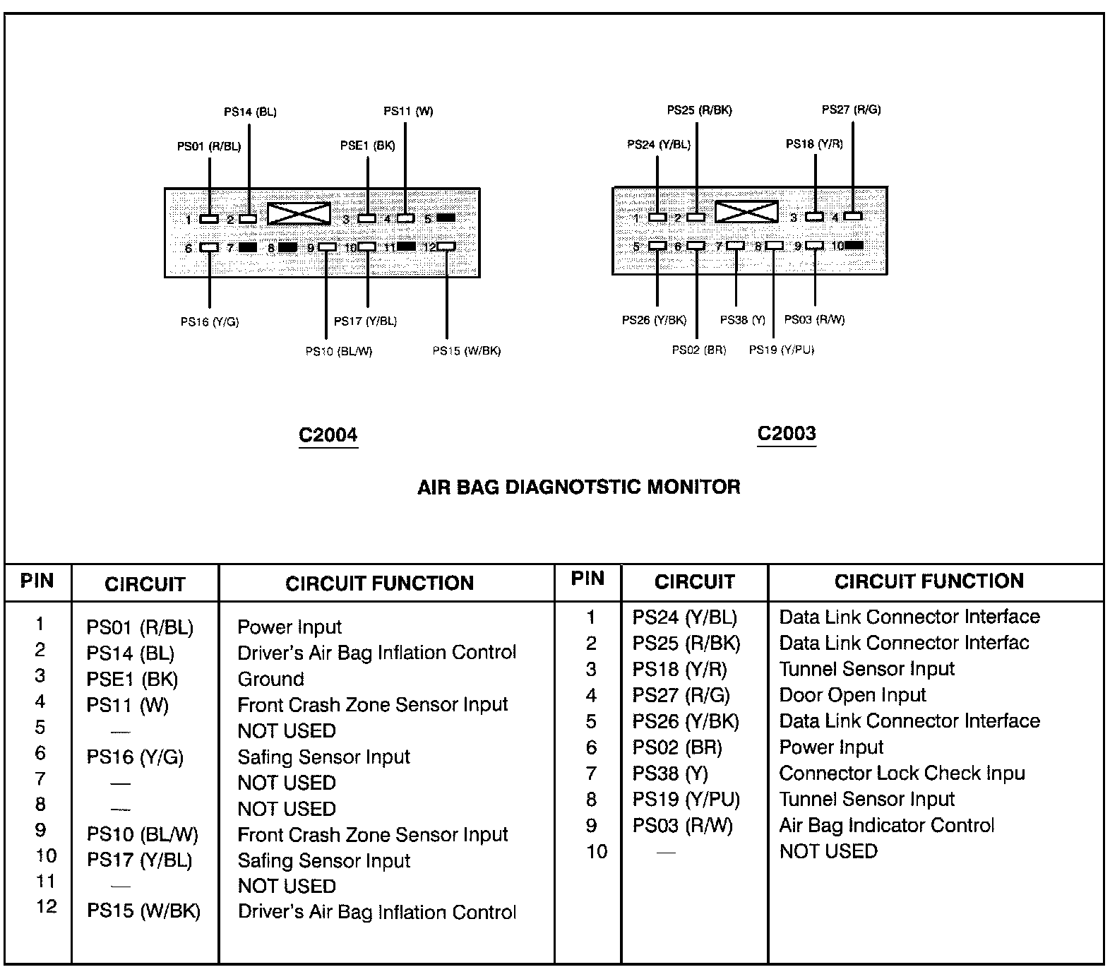 Air Bag Diagnostic Monitor (C2004,C2003):