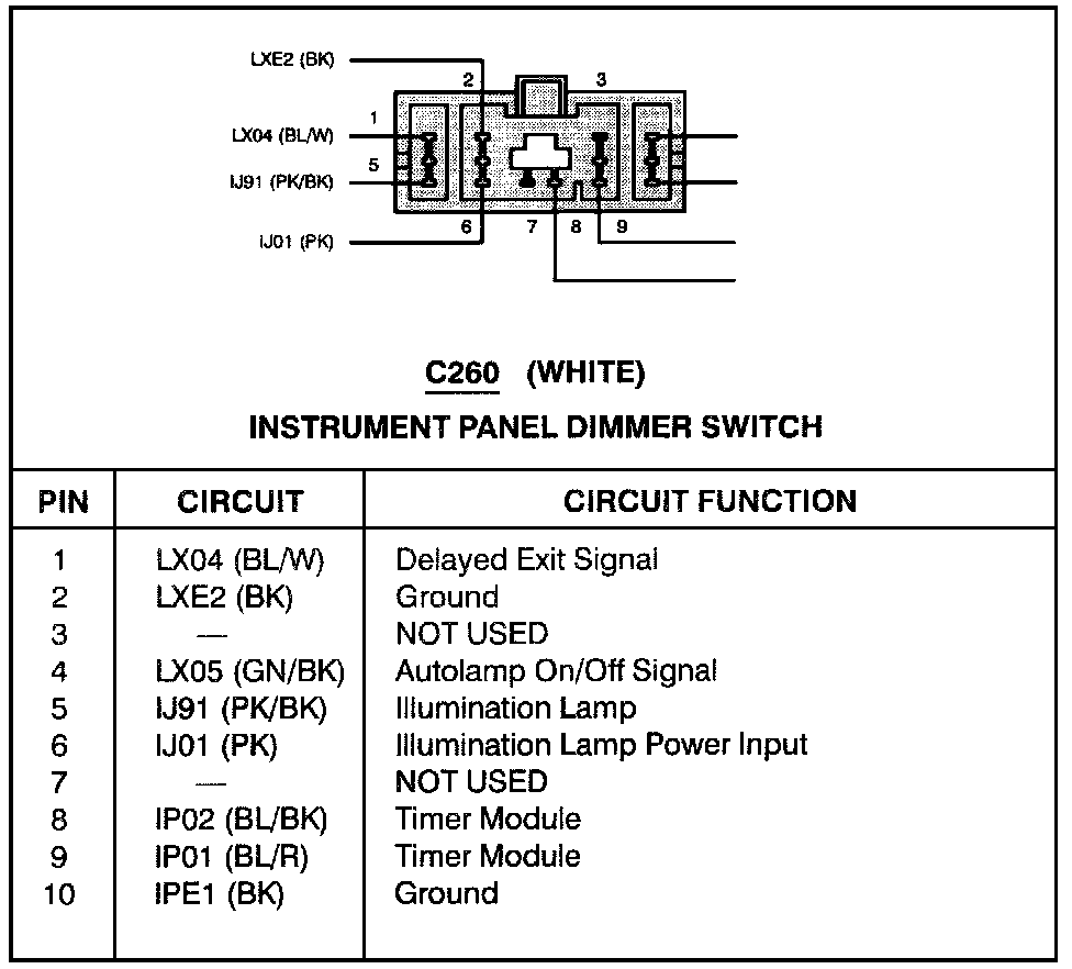 Instrument Panel Dimmer Switch (C260):