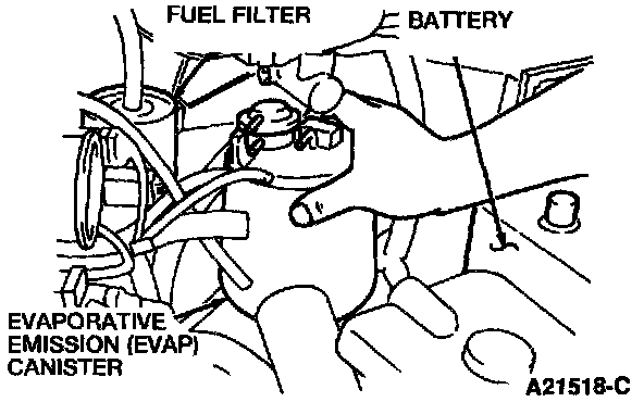 The fuel filter is located behind the RH side of the carbon canister under the hood