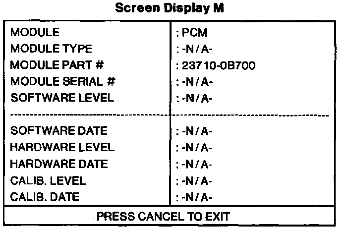 1. In the Mode Select Screen highlight MODULE IDENTIFICATION and press TRIGGER. Screen Display M will appear.