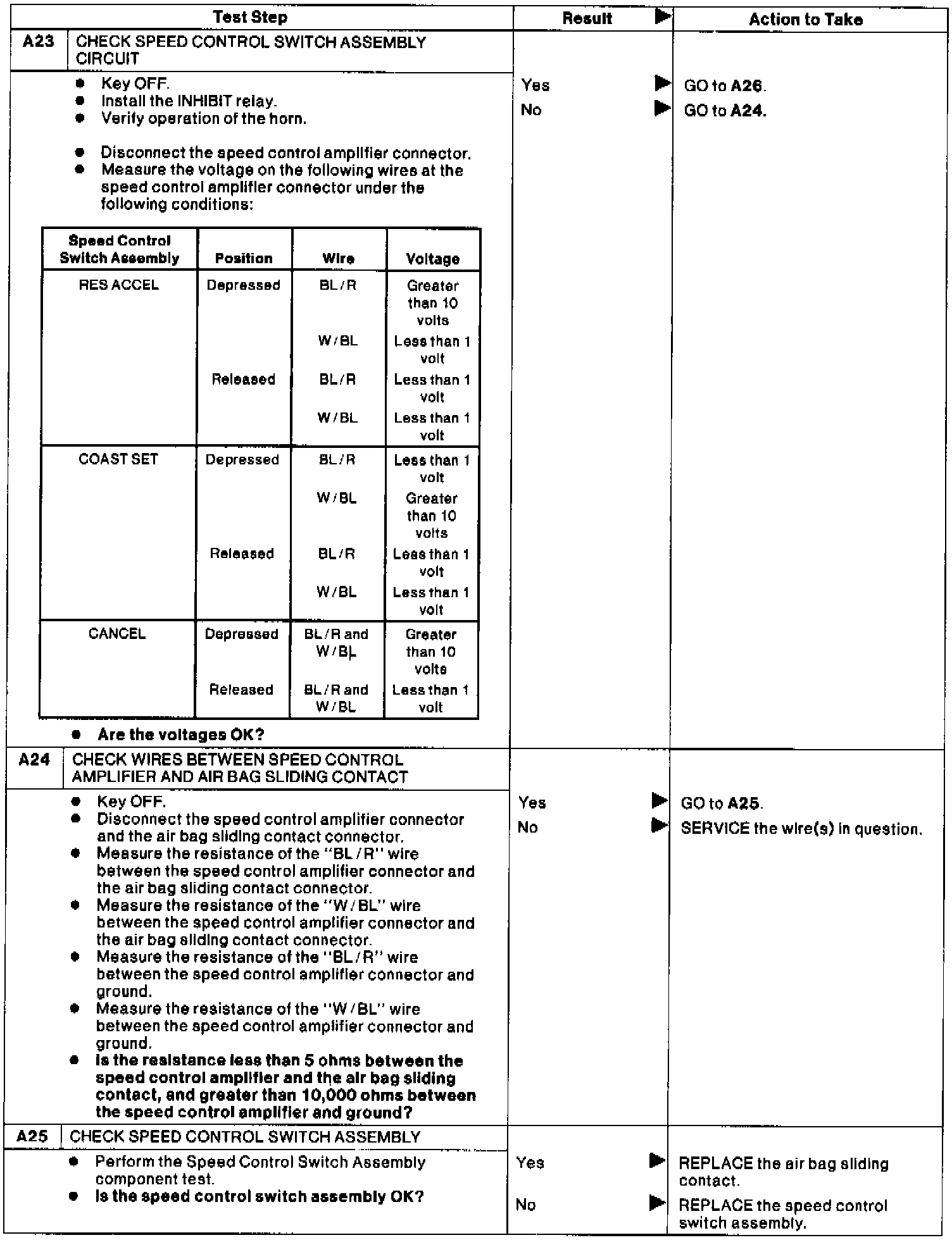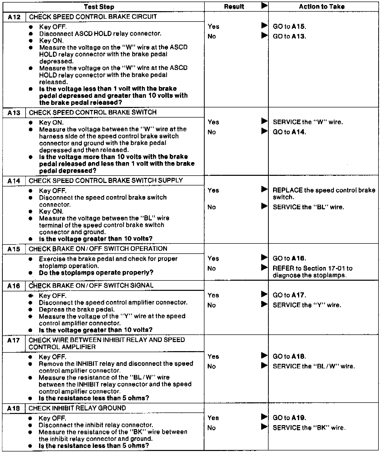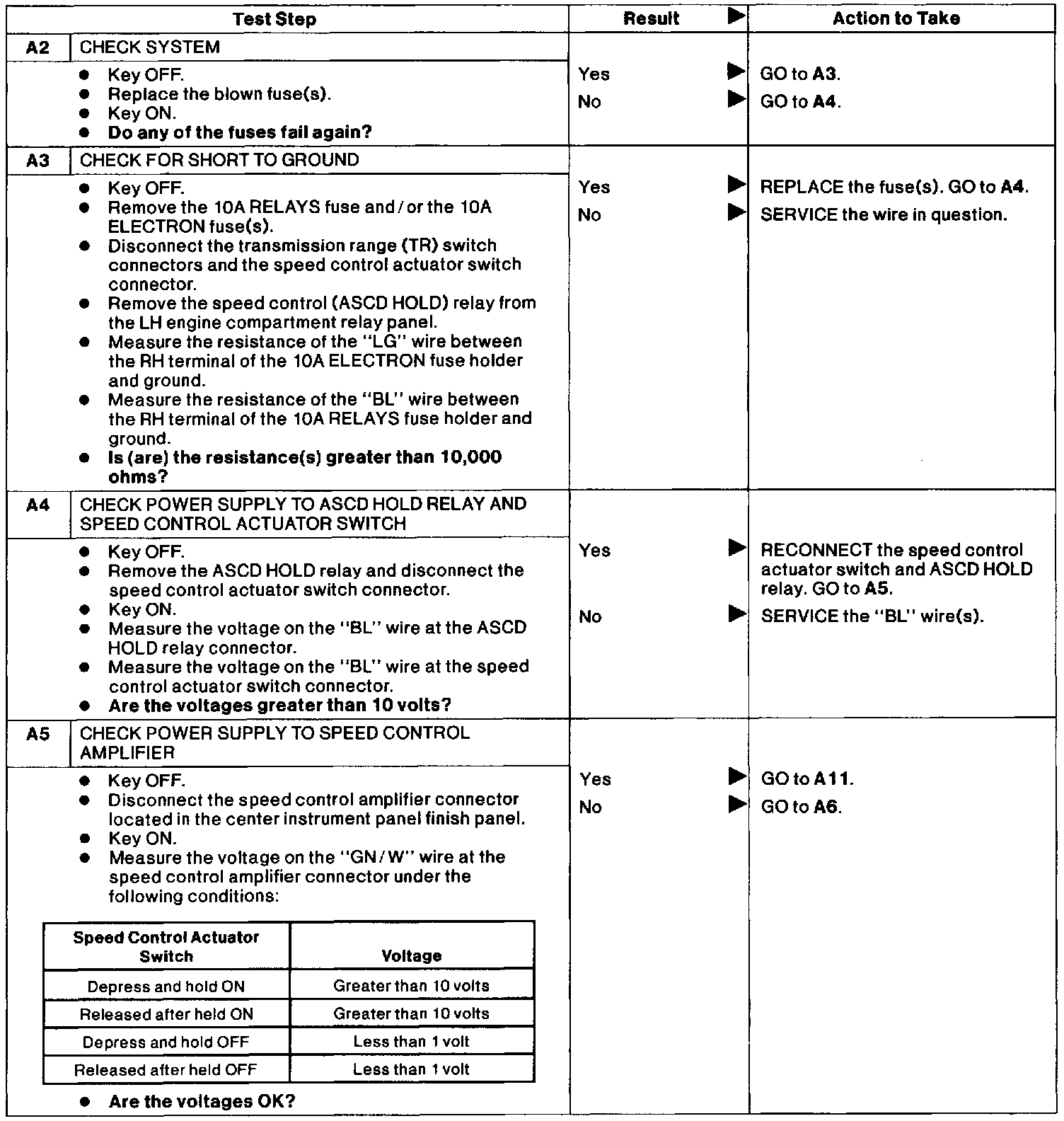 Test A: Speed Control Inoperative.:
