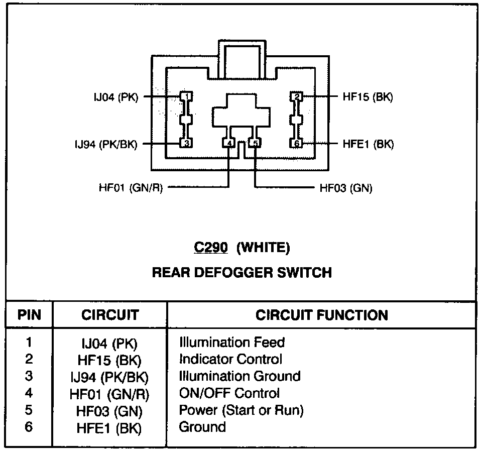 Rear Defogger Switch (C290):