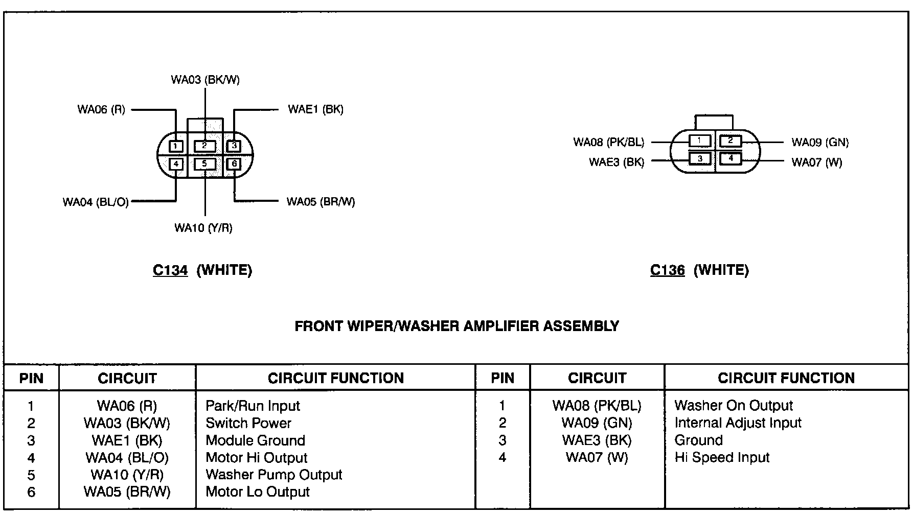 Front Wiper/Washer Amplifier Assembly (C134, C136):