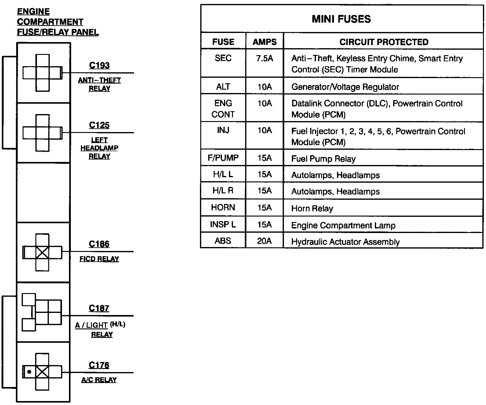 Engine Compartment Fuse/Relay Panel (Part 1 Of 2):