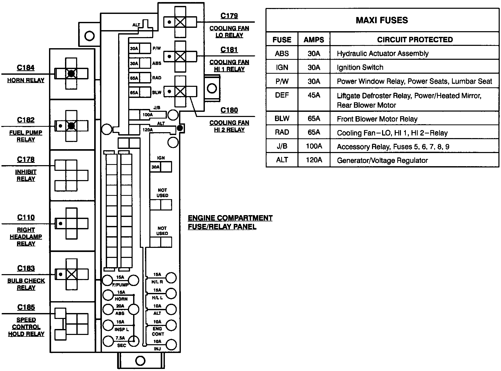 Engine Compartment Fuse/Relay Panel (Part 2 Of 2):