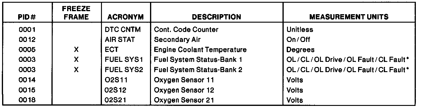 CL = Closed loop using 02s(s) as feedback for fuel control.