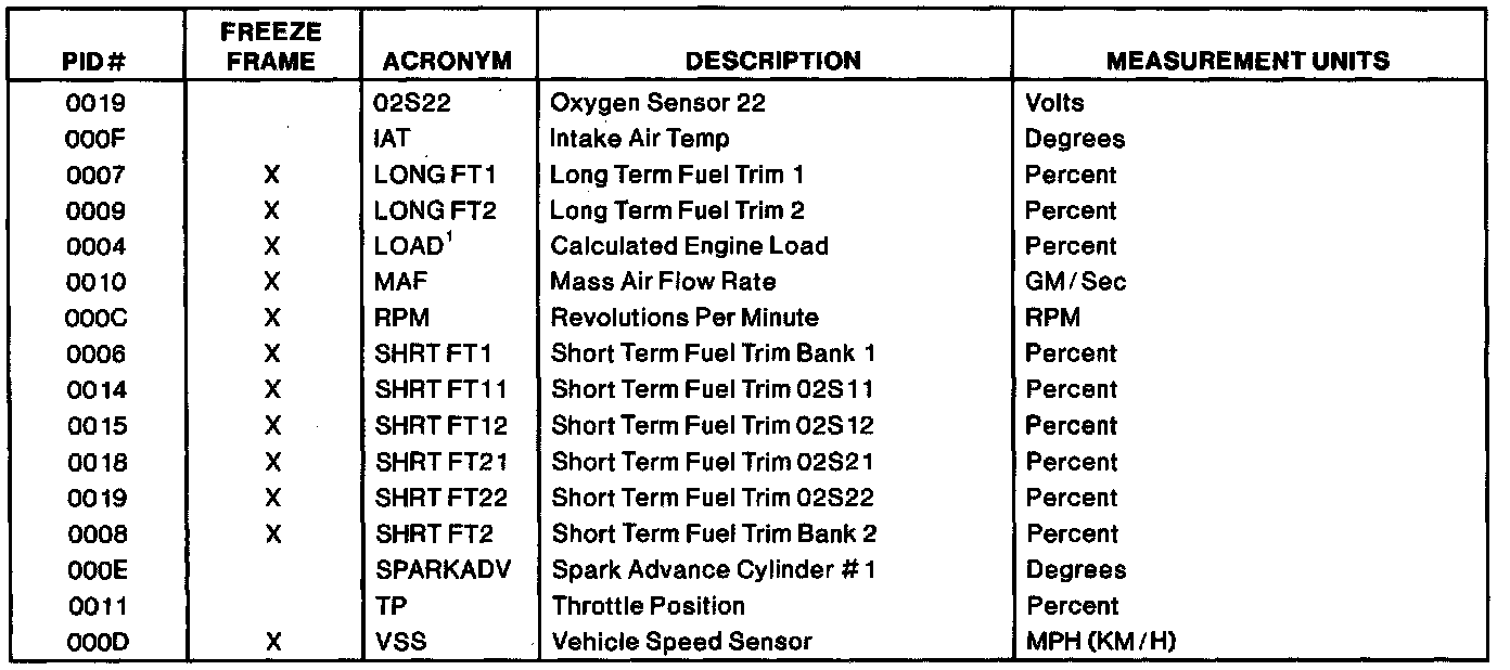 The parameter identification (PID) mode allows access to certain data values, analog and digital inputs and outputs, calculated values, and system status information. Throughout the manual, there will be references to PID values. Some of the PID references are from a generic OBD II PID list all scan tools must access. If a Ford PID is referenced and is not on this list, it can be accessed from the New Generation STAR (NGS) Tester scan tool (or equivalent) through the Diagnostic Data Link Menu. If a generic scan tool (GST) is used for non-generic OBD II PIDs, a string of characters may have to be entered.