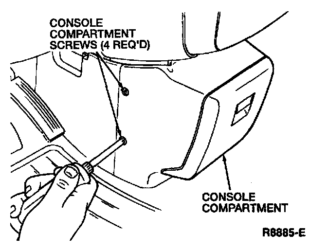 2. Remove the four console compartment plastic screws or the CD changer cover plastic screws (if equipped) and the console compartment door or the CD changer cover (if equipped).