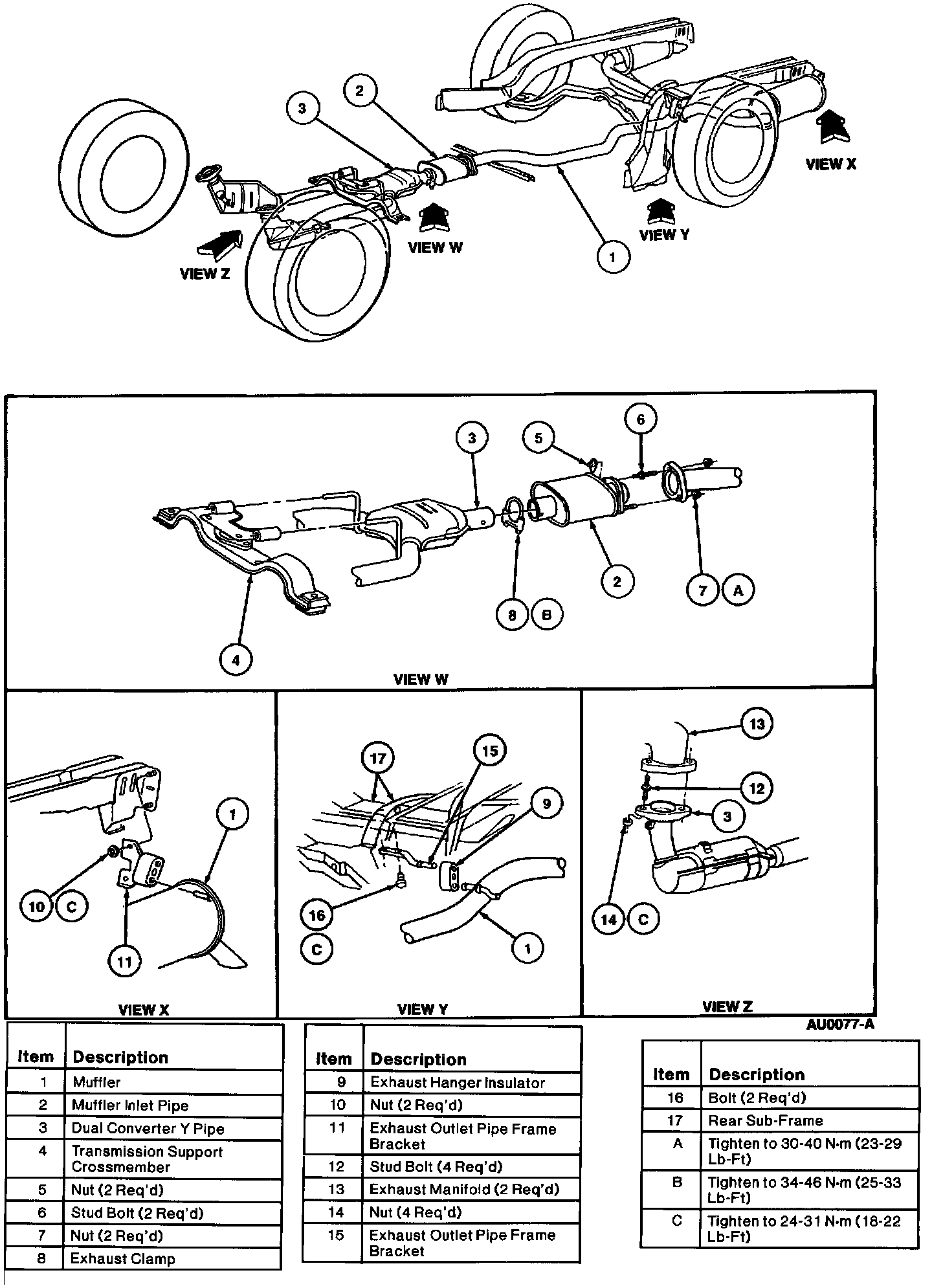 CAUTION: When servicing exhaust system or removing exhaust components, disconnect all Heated Oxygen Sensors (HO2S) at the wiring connectors to prevent damage to the heated oxygen sensors and wiring harness.