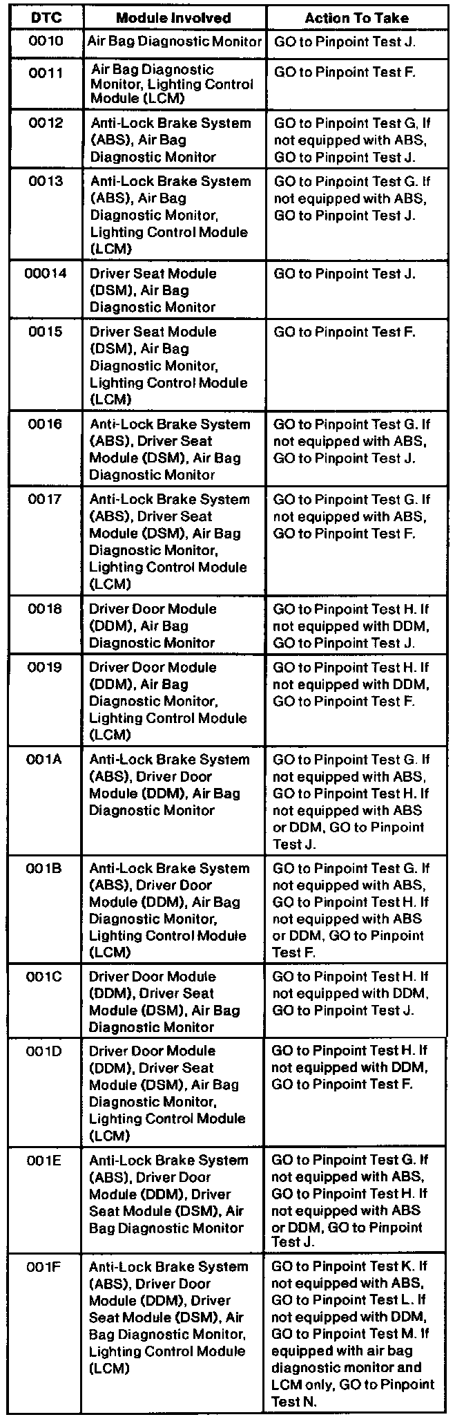 ISO 9141 Communication Link Diagnostic Trouble Code (DTC) Index