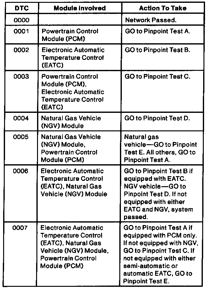 J1850 Communication Network Diagnostic Trouble Code (DTC) Index