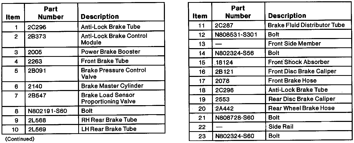 Brake Hydraulic Components, Sedan (Part 1 Of 2):