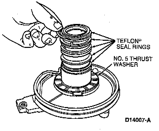 1. Remove five Teflon seal rings and No.5 thrust washer. Discard seal rings.