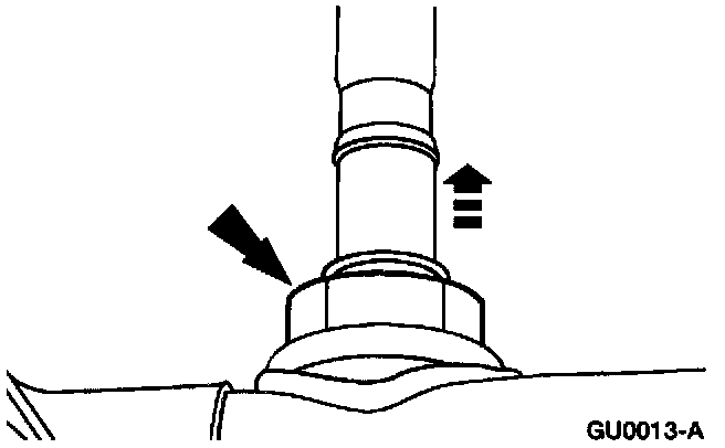 7. Remove the (A) TWC to muffler inlet pipe bolts and nuts and the (B) TWC. Discard the gasket.