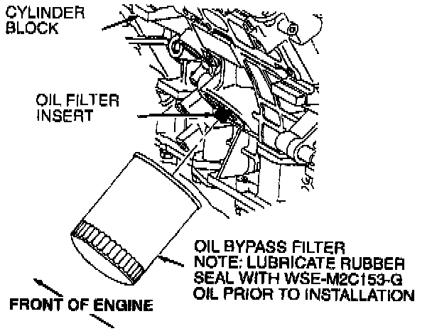 1. Lubricate rubber seal of oil bypass filter with engine oil meeting Ford specification ESE-M2C153-F.
