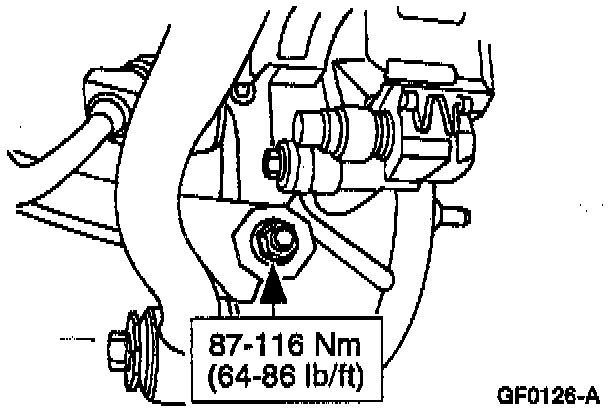 ^ Use High lift Transmission Jack to raise the spindle so that the suspension arms are parallel to the ground before tightening the bolts to the specified torque.