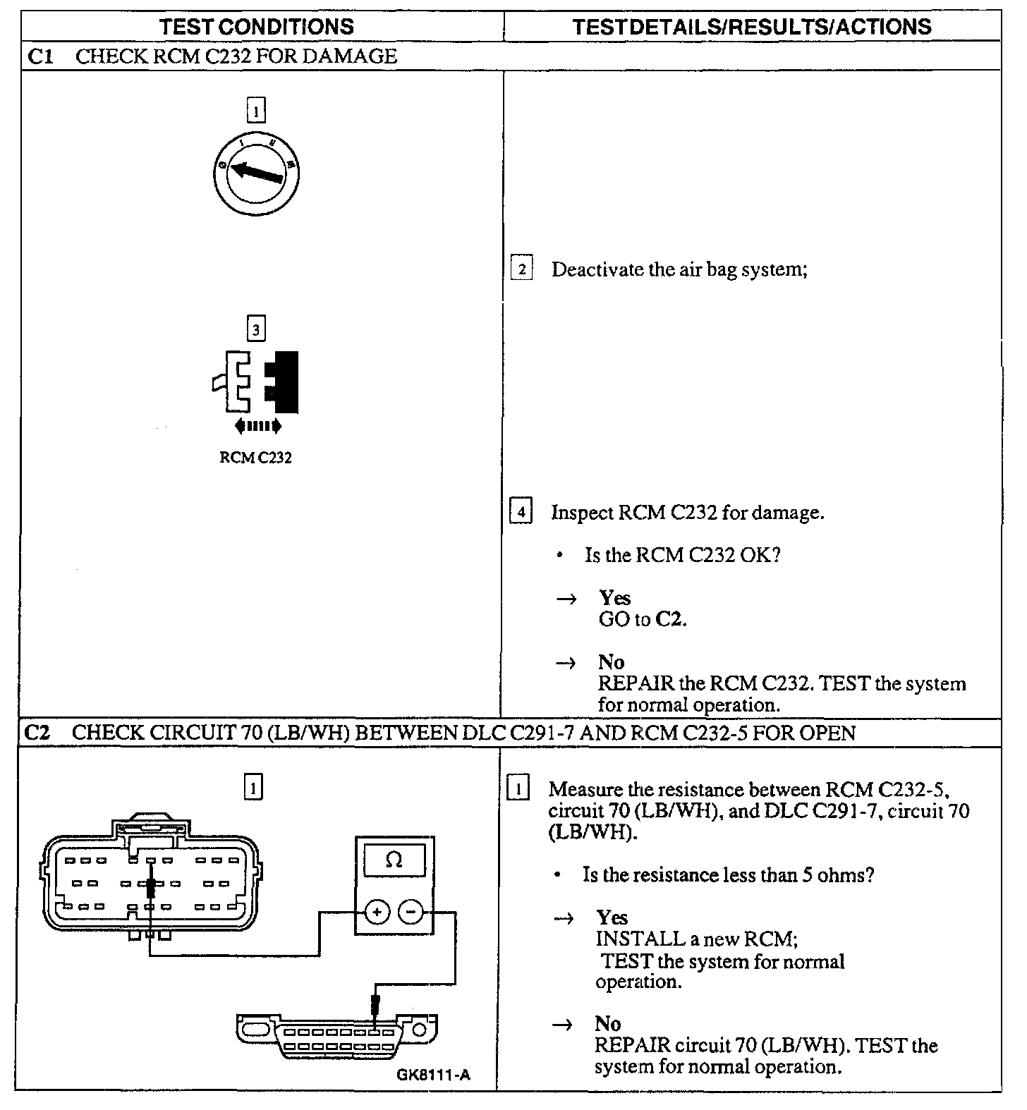 C: No Response to NGS Tester - Restraint Control Module (RCM)