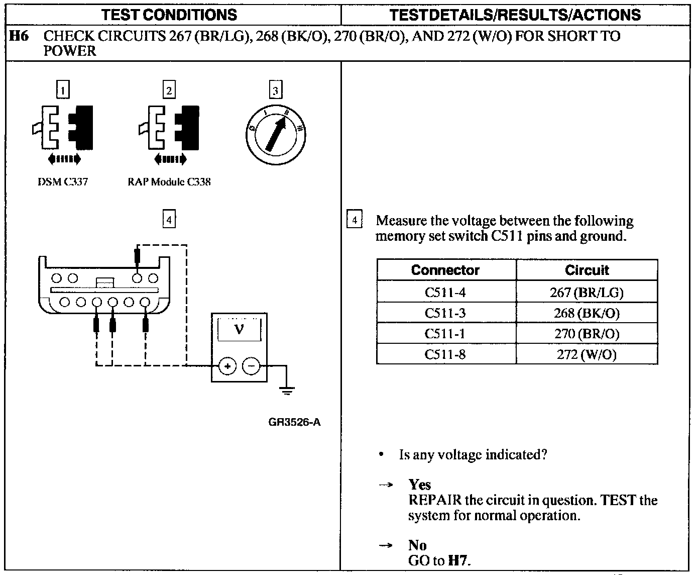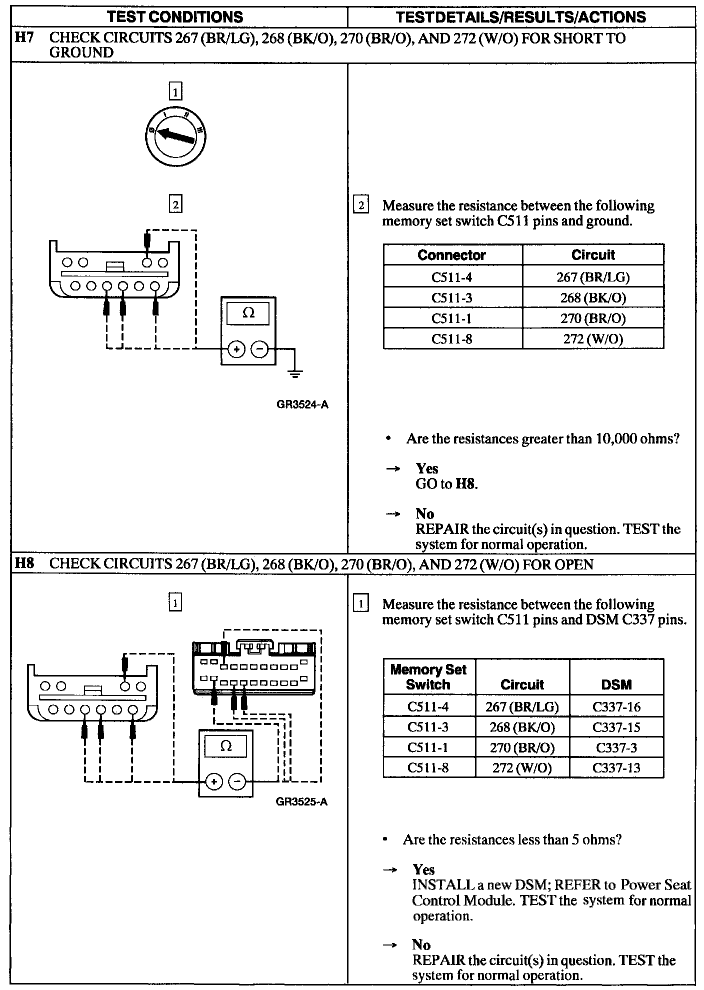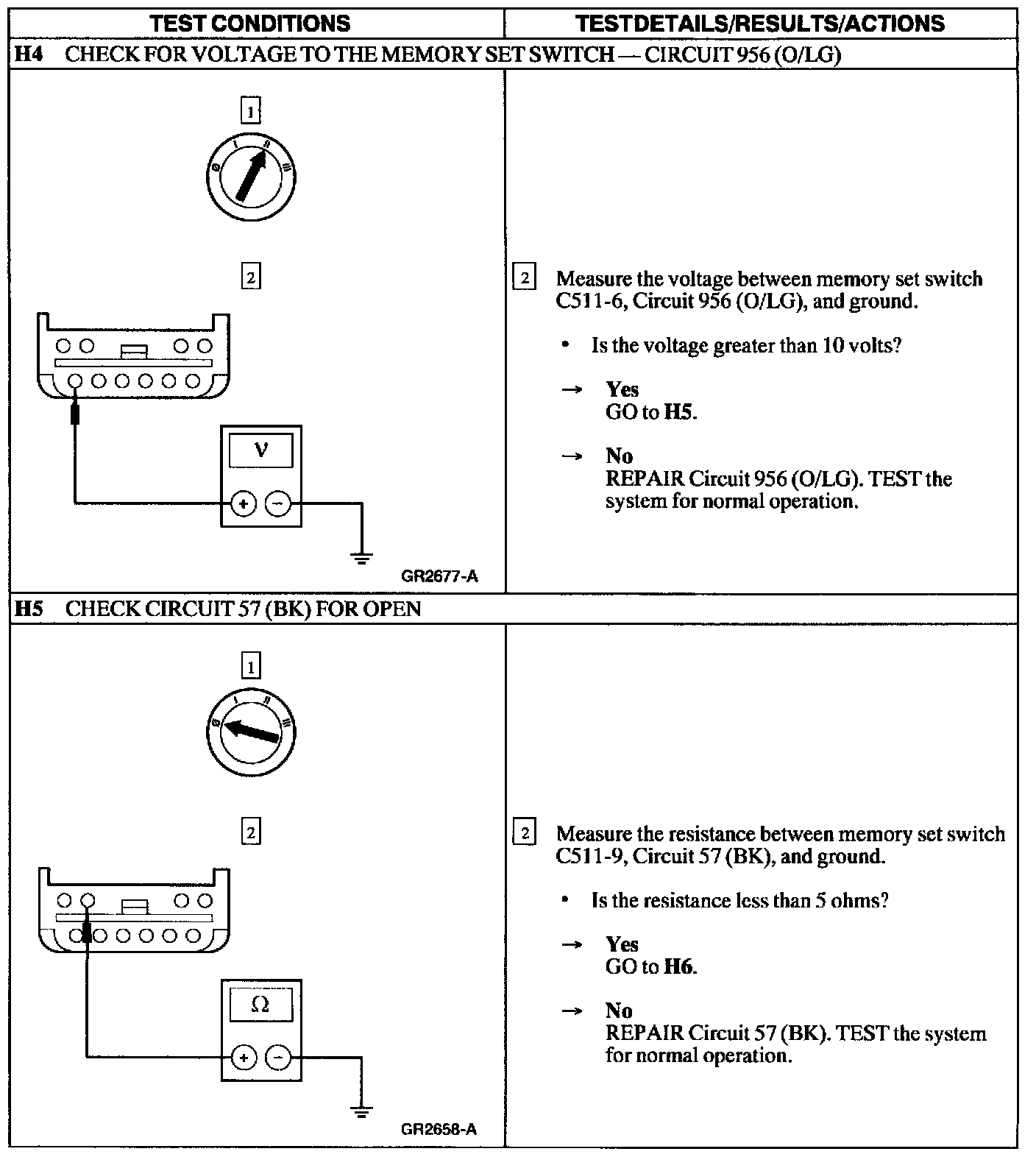 Test H: Memory Seat Does Not Operate Correctly- Does Not Operate Using the Memory Set Switch