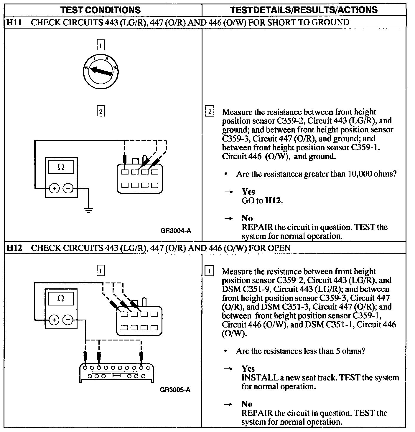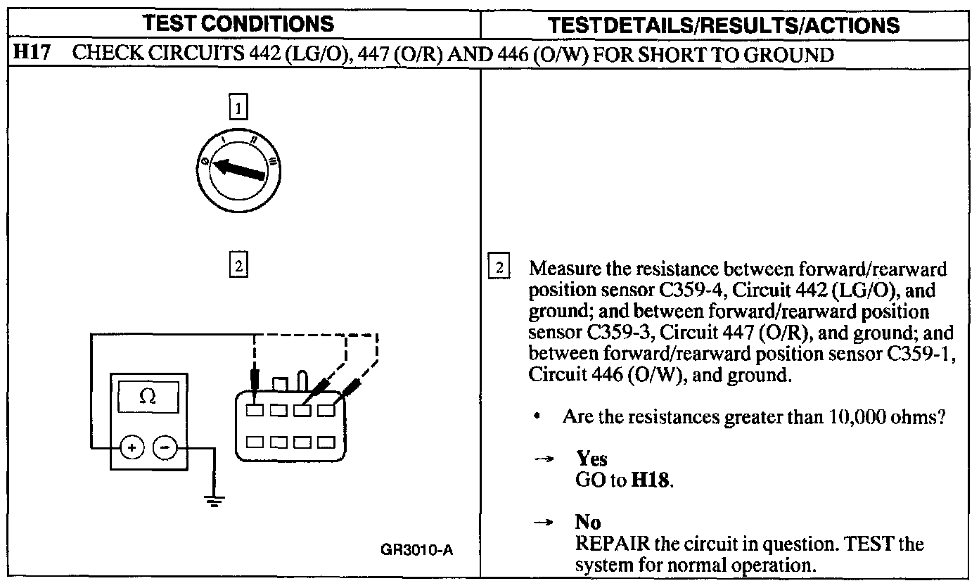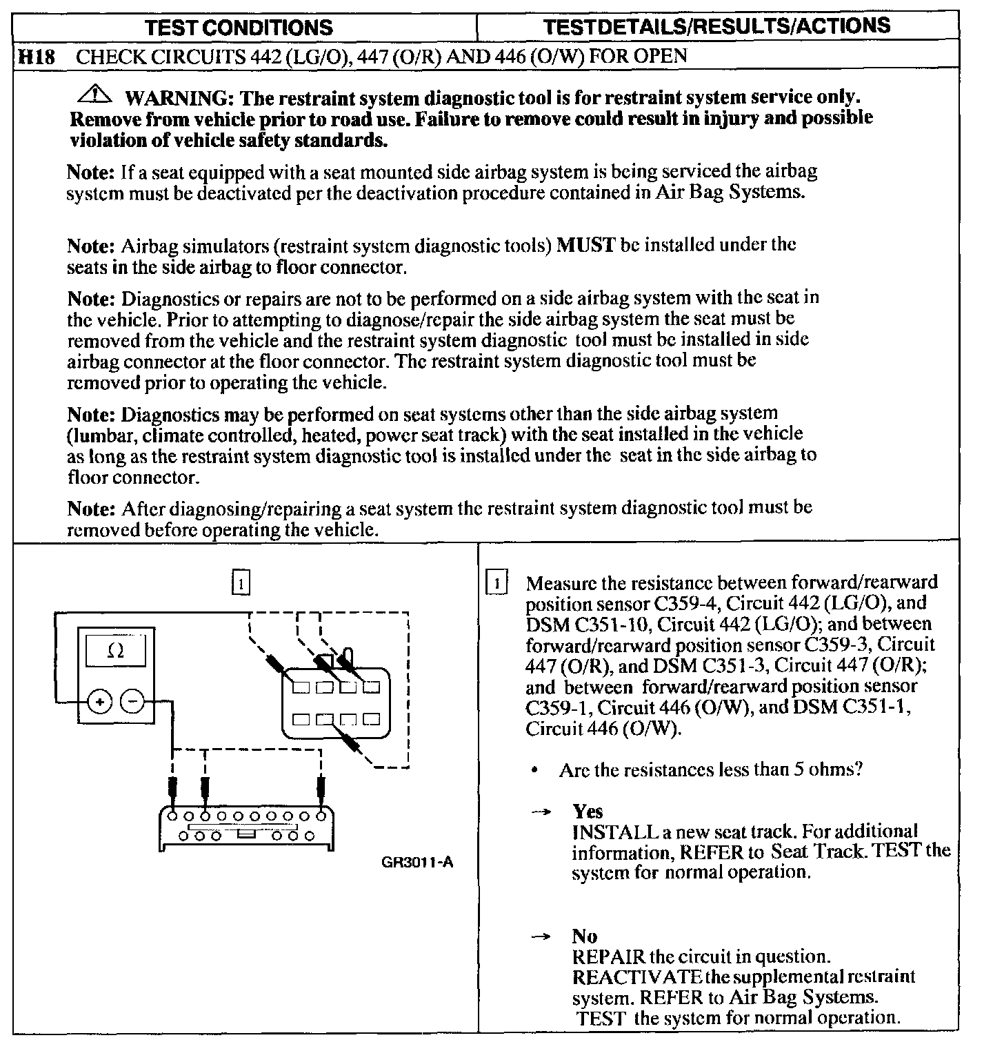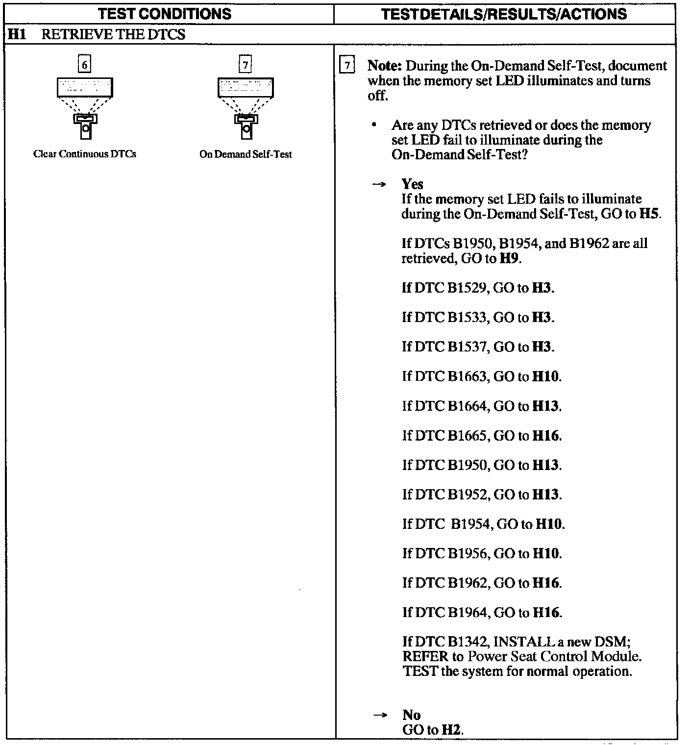 Test H: Memory Seat Does Not Operate Correctly- Does Not Operate Using the Memory Set Switch