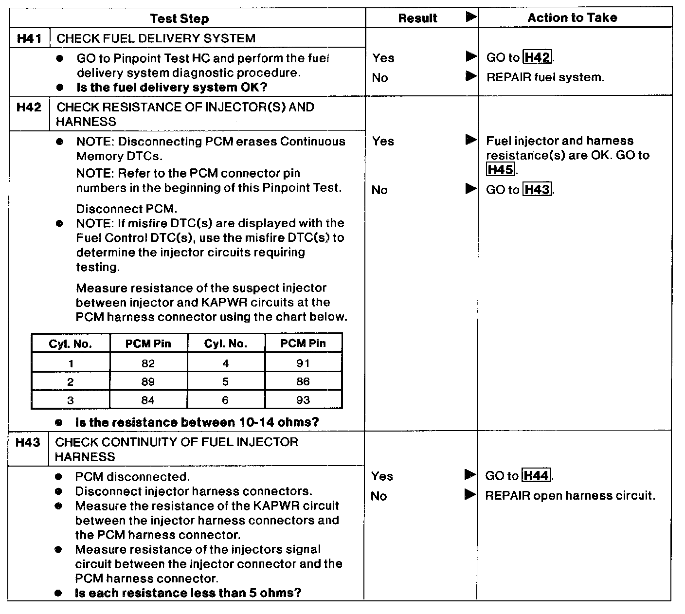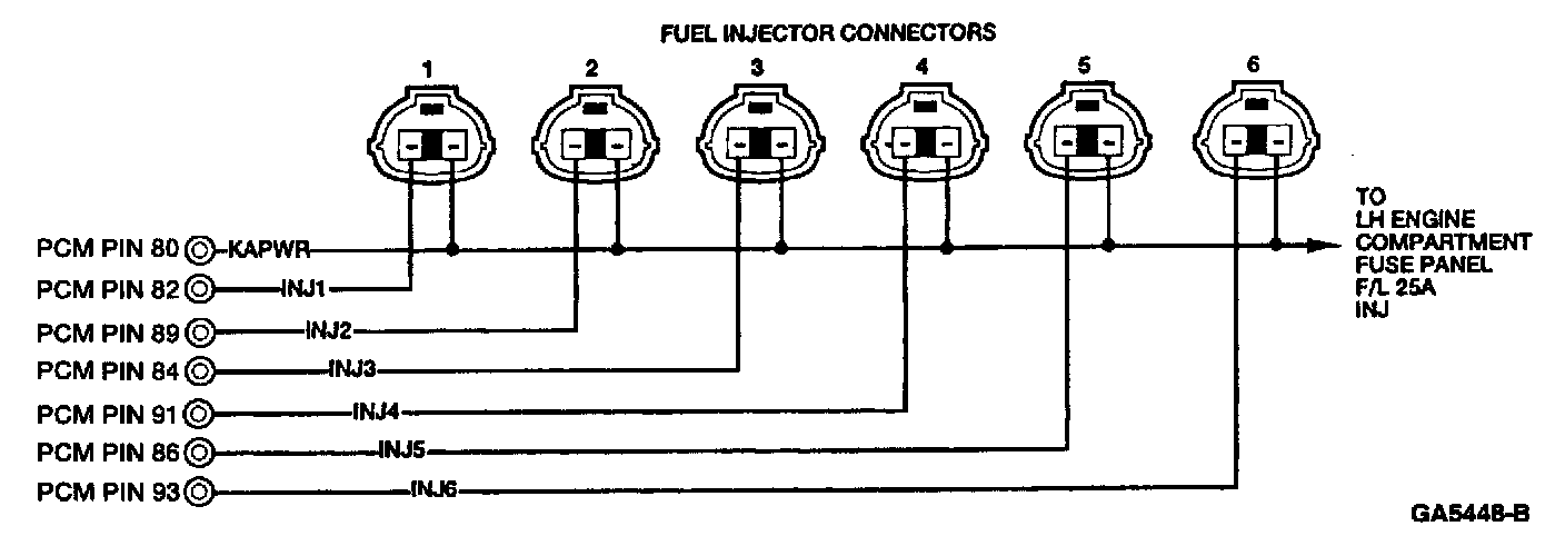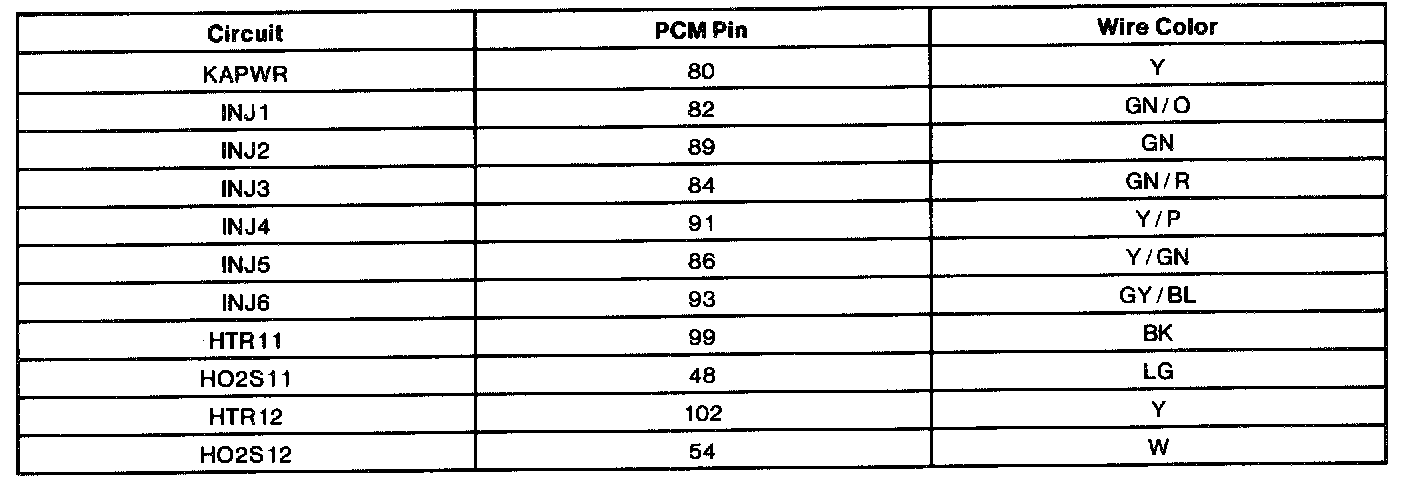 - Harness circuits: HO2SH, HO2S, INJ 1-6, and VPWR
