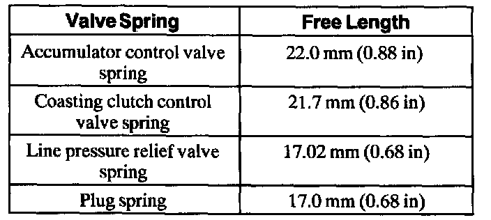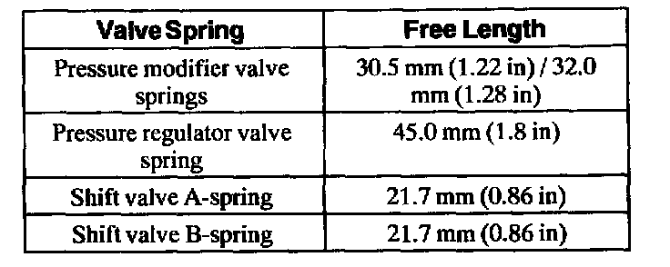 Lower Control Valve Body Valve Spring Lengths