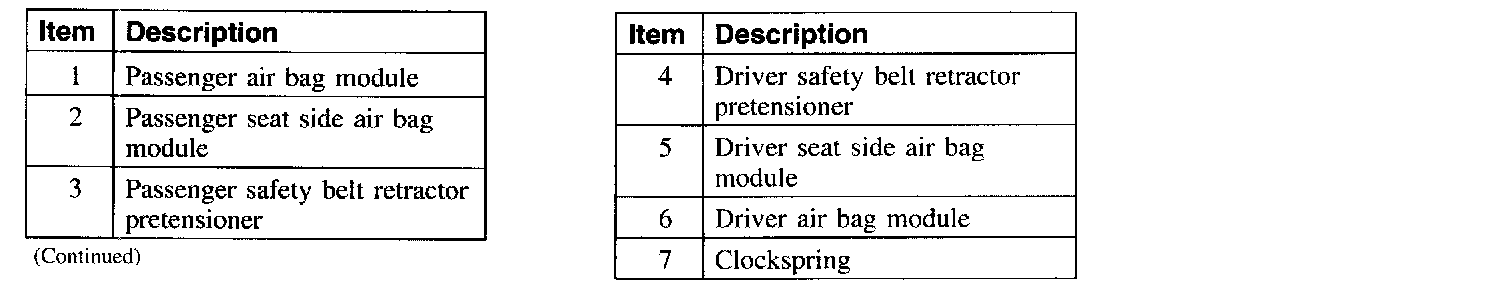 ^ References to side air bag modules refer to the seat-mounted and not to the steering wheel or instrument panel mounted air bag components of the supplemental restraint system (SRS).