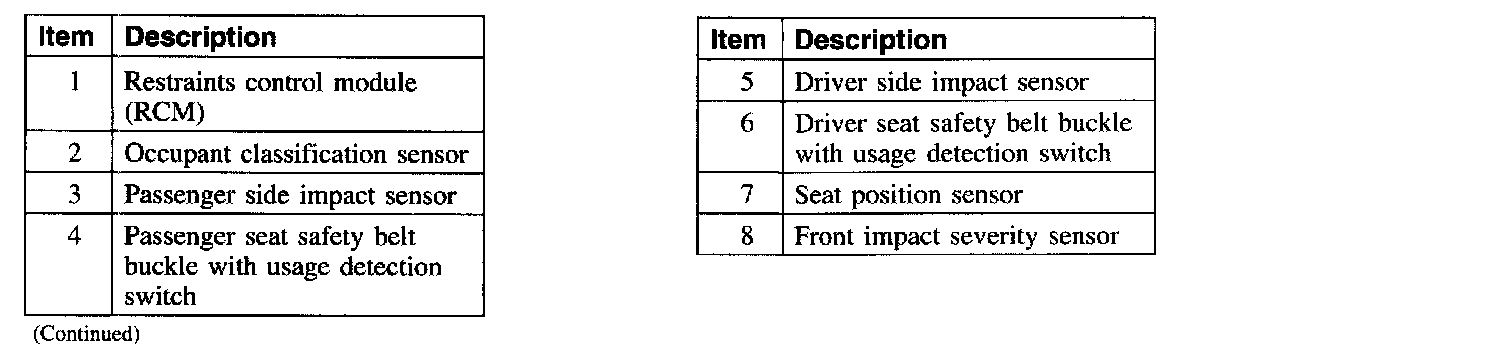 Air Bag And Safety Belt Pretensioner Supplemental Restraint System (SRS) Occupant Classification Sensor: