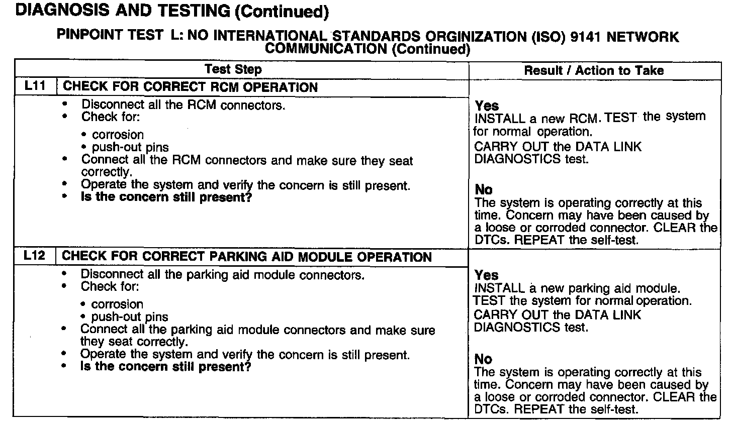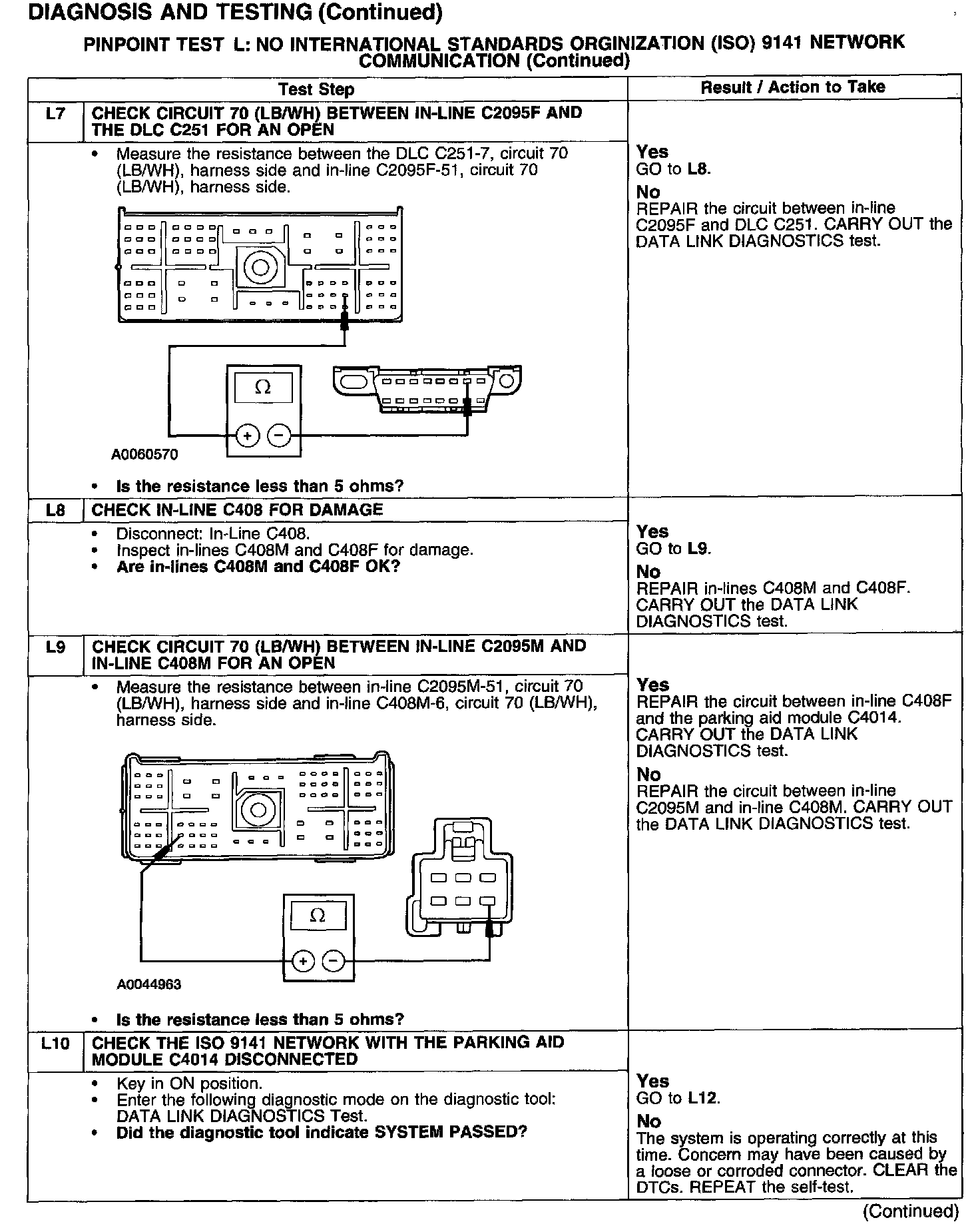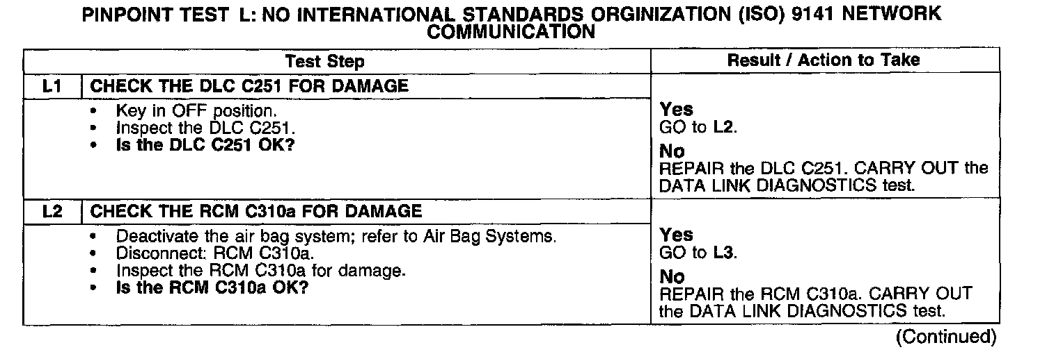PINPOINT TEST L: NO INTERNATIONAL STANDARDS ORGANIZATION (ISO) 9141 NETWORK COMMUNICATIONTest L1-L2: