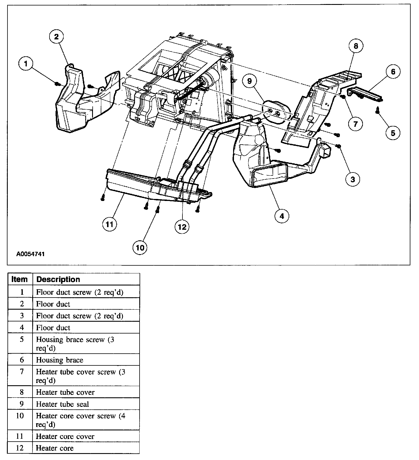 NOTE: If a heater core leak is suspected, the heater core must be pressure leak tested before it is removed from the vehicle.