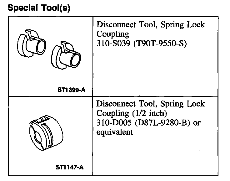 1. Install the spring lock coupling disconnect tool.