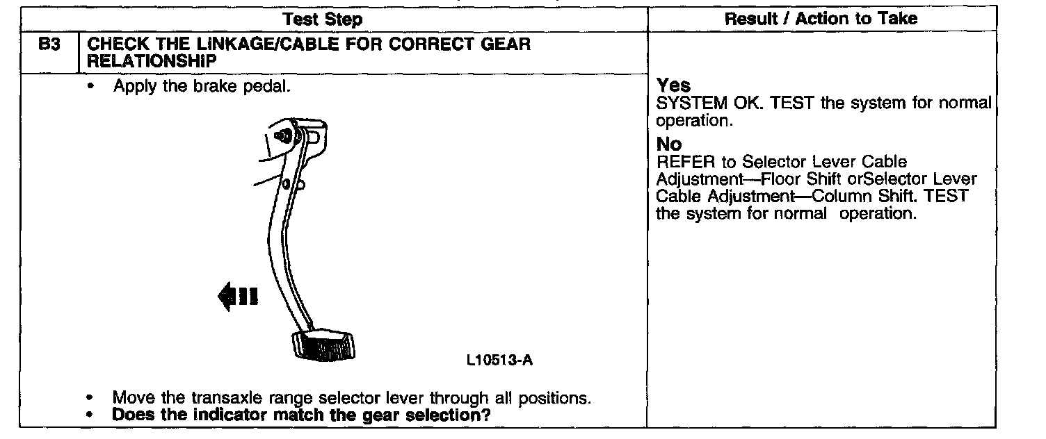 PINPOINT TEST B: THE SHIFT CONTROL LINKAGE IS OUT OF CORRECT GEAR RELATIONSHIP