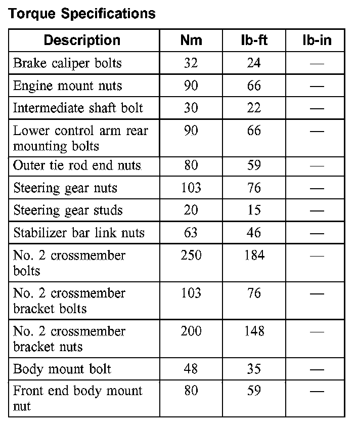 Torque Specifications:
