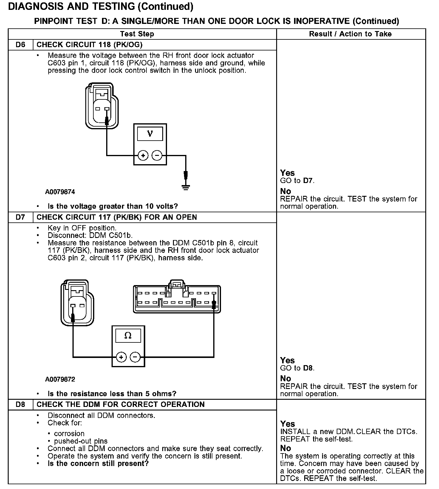 PINPOINT TEST D: A SINGLE/MORE THAN ONE DOOR LOCK IS INOPERATIVE