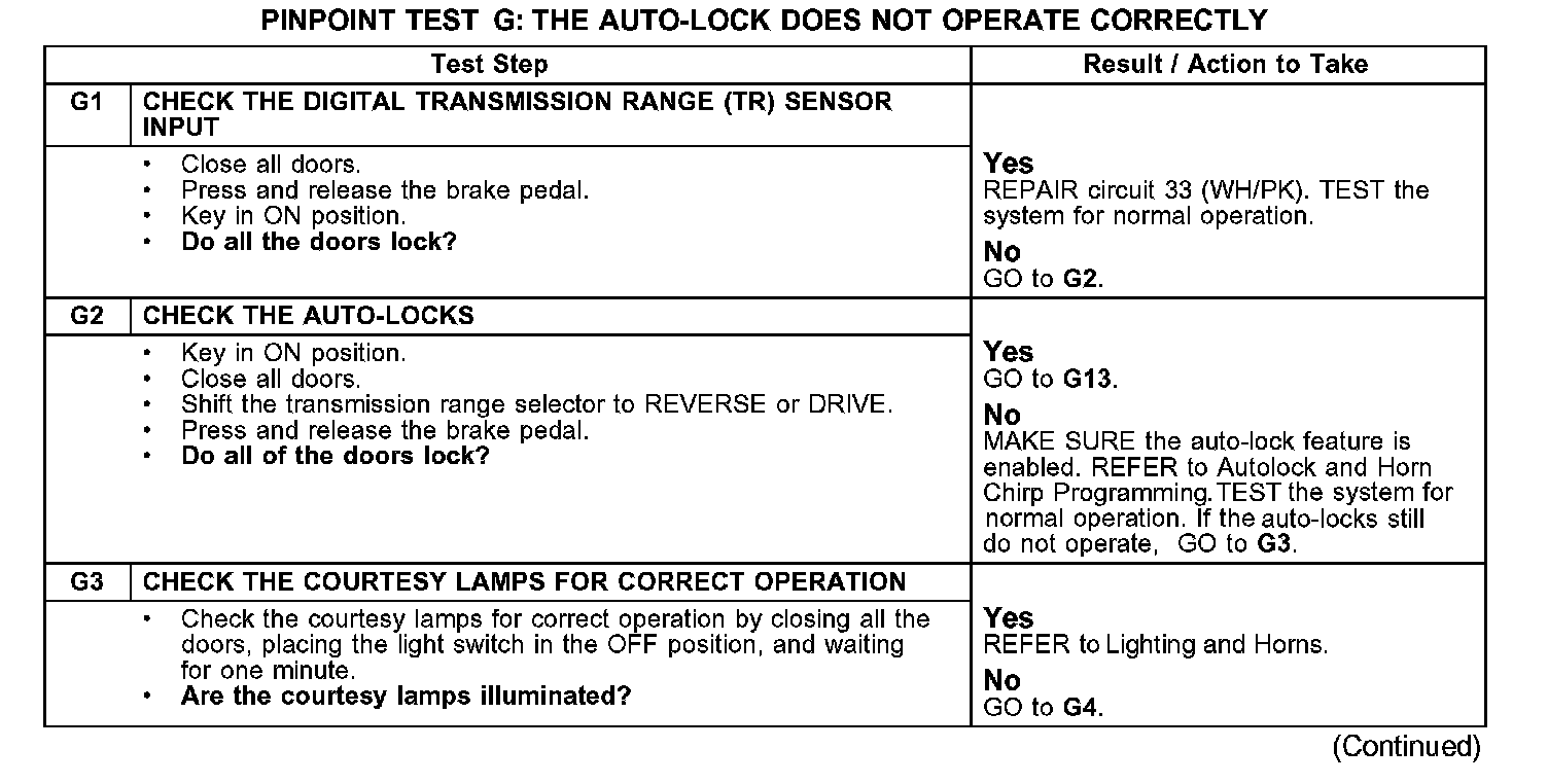 PINPOINT TEST G: THE AUTO-LOCK DOES NOT OPERATE CORRECTLY